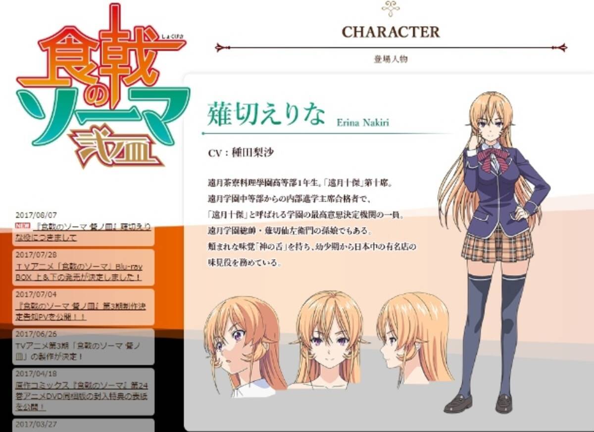 種田梨沙が 食戟のソーマ 薙切えりな役を降板 Cvは金元寿子に変更 収録が長期に渡るため 17年8月7日 エキサイトニュース